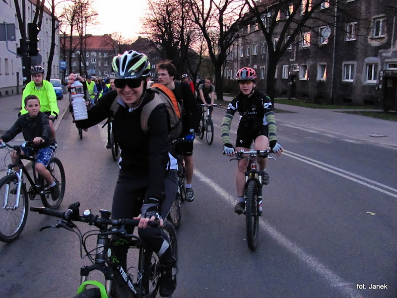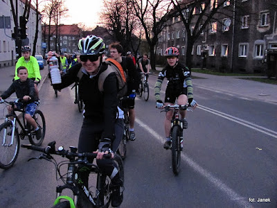 Trasa już tradycyjna, letnia i długa. Pełna eskorta policji świetnie zabezpieczyła przejazd, ja natomiast dbałem tylko, żeby peleton nam się zbytnio nie rozciągał. Pod koniec trzeba było też pomóc nieco dzieciakom, które jednak na maleńkich kółkach miały nieco problemu, by nas dogonić po wcześniejszym przestoju. Na szczęście wszyscy dali radę, dojechaliśmy zupełnie bezpiecznie i w znakomitej atmosferze. 80 zadowolonych rowerzystów.